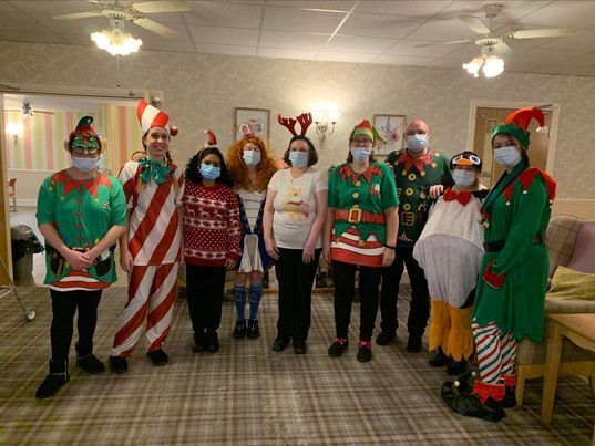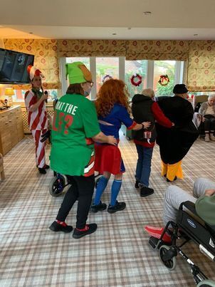 Staff in fancy dress for residents christmas party